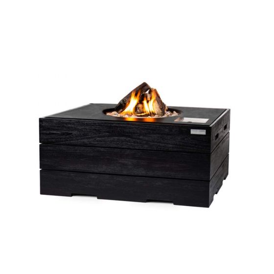 Happy Cocooning vuurtafel teakhout rechthoek zwart/zwart 107x80x46 cm